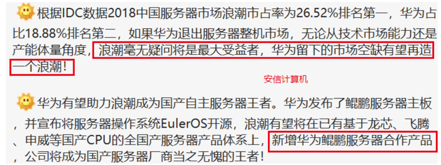 周四晚→浪潮信息:第一受益华为退出此服务器整机市场