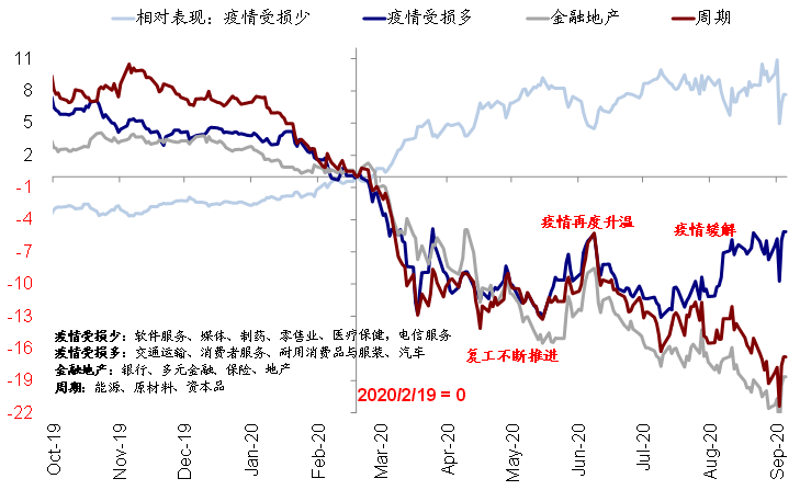 因此,综合来看,当前市场价格中隐含的增长和复工预期都没有明显超出实际情况过多,当然不同板块之间存在明显的不均衡现象,因此短期拥挤交易和超买因素通过回调消化可能也并非坏事。往后看,疫情和复工进展对市场更为关键,而疫苗研发将带来上行风险。从板块和风格层面,此轮波动与6月11日道琼斯代表的价值股急涨超买后大跌如出一辙,因此不排除短期内出现一定程度上的板块风格强弱切换,从此前过去集中的基础向其他板块扩散。