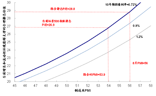 我们分别对美股当前隐含的增长预期和复工预期做了测算,发现以下结论,1)利用美国制造业PMI与标普500指数盈利增长较高的历史相关性,推算当前市场实际估值隐含的PMI(53.9)对应的12个月动态EPS增速为6.74%,而目前市场一致预期隐含的增速为8.8%,因此没有显得过高。2)以疫情受损多的板块从底部以来的相对修复程度作为计入复工预期的近期替代的话,目前水平相当于从底部修复-39%,这个与综合多方面高频数据(如就餐人数、公共交通出行、TSA安检人数、酒店和航班预定数、汽车汽油消费等)反映的复工进展相当于疫情前水平的-40%~-30%,也基本相当。