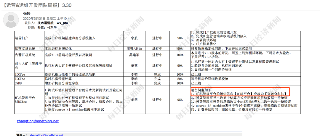 兴融合包括官网、APP、结算、售卖等系统,都由网心的研发团队负责。在付东华维护的项目管理系统中,可以清晰地看到有关兴融合的所有项目及参加的人。参与兴融合相关项目的同事在具体工作中,除了用XR代号来指代兴融合之外,不会对这类项目做特殊处理。有关这类项目中要解决的问题,或者数据同步,会出现在各类日报、周报中。