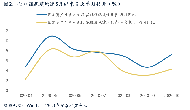 固定资产投资增速继续回升。全口径基建增速单月增速为7.3%,高于上月的4.8%。这也是5月以来首次单月转升。在近期报告中,我们指出从专项债投向看,前期棚改对基建的分流没有进一步扩大。5-10月基建增速均值为7.7%,是经济的原发带动点之一。