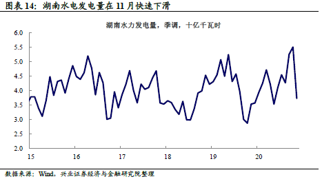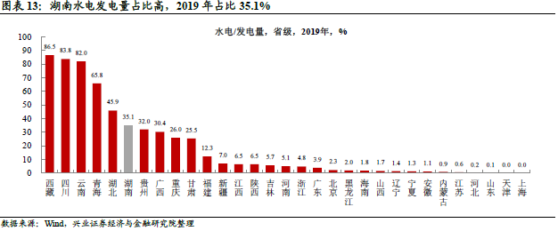 湖南水电发电量占比较高,额外加剧了湖南电力供给紧张。2019年湖南水电占发电量比例为35.1%,而湖南水电发电量在11月快速下滑,这可能是湖南电力紧张的额外原因。