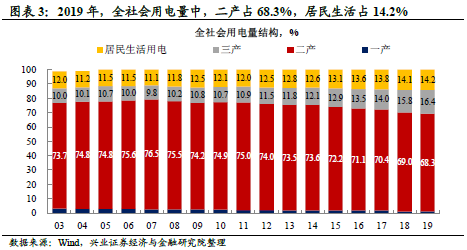 内外需求叠加支撑工业偏强,工业用电需求增加。11月工业增加值仍偏强,一方面是国内投资需求仍偏强,另一方面出口继续超预期。经济赶工情况在12月可能持续,内需仍会支撑生产。出口方面,海外疫情反复可能加剧海外生产与需求的缺口,增加对中国出口的需求,预计中国出口偏强的情况可能持续到2021年一季度,12月工业生产或将继续偏强。2019年工业用电占全社会用电需求接近70%,工业偏强会增加用电需求。