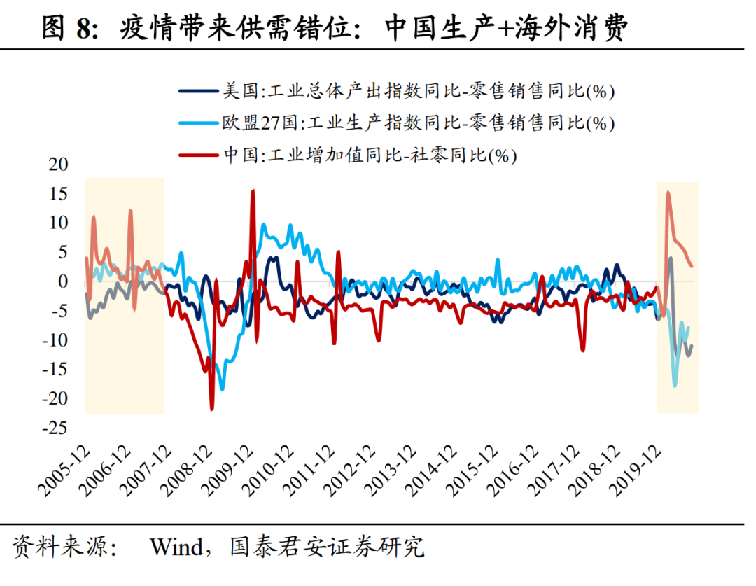 ②经济周期错位:中国2月经济数据见底、3月复产复工后工业经济率先修复,4-5月投资、出口、消费渐次消费;海外经济数据4-5月见底,疫情尚未控制便开始复产复工,随后疫情二次三次爆发,经济复苏受阻。
