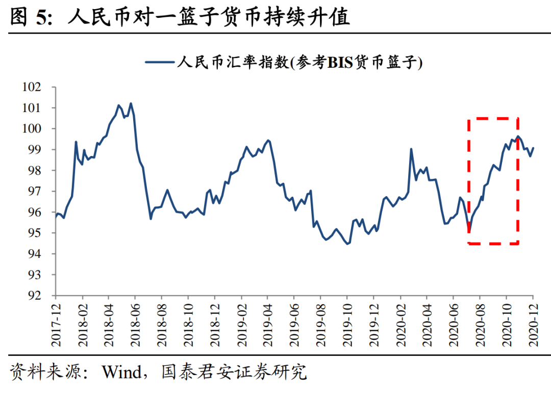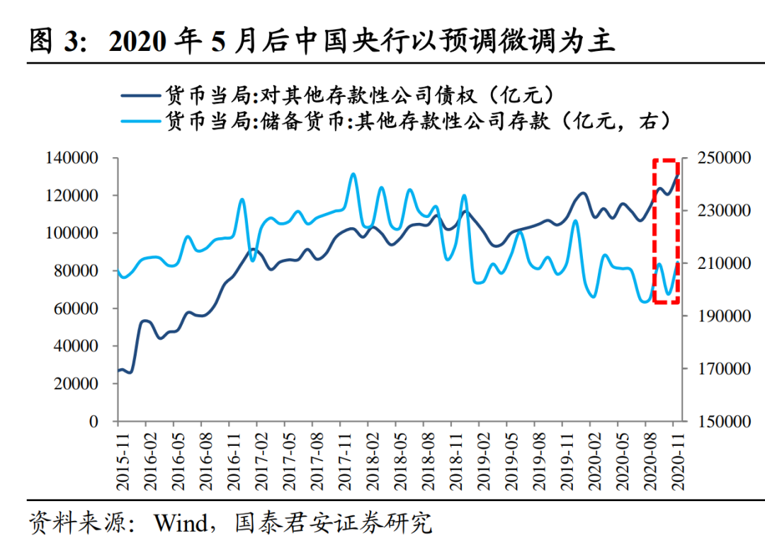 下一阶段,汇率将是政策的重要关注点。中央经济会议首次提及“汇率稳定”问题,人民币升值可能已经接近决策层的某个临界点,为了维持2021年汇率稳定、避免出口“双杀”,需要央行持续投放流动性。