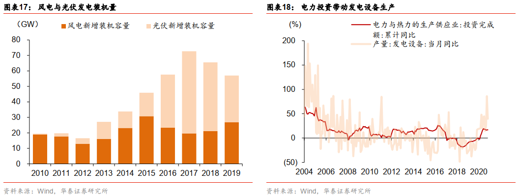 电力设备:冷冬暴露电力系统应对尖峰电力需求短板,有望促进电力设备更新或追加投资。近年来为推动供给侧改革,国家对电网投资进行调控,2017-2019连续三年投资负增长。据《国家电网有限公司社会责任报告》数据显示,2019年国网公司在电网投资的实际完成额比2018年同比下降约8%,较2019年预算投资压减了12%左右。2020年为对冲疫情影响,国家大力投资新型基建,支持光伏发电、特高压建设,电力投资才出现明显增长。今年冷冬期间多地宣布电力负荷超越历史同期记录,电厂机组故障频发,老旧电力设备更新与输配电设备投资迎来机遇。并且在“2030年前碳排放达峰”目标下,光伏与风电发展也有望加速,2020年12月全国能源工作会议上,国家能源局提出“2021年风电、太阳能发电合计新增1.2亿千瓦”的目标,为2019年新增装机容量的2倍左右。