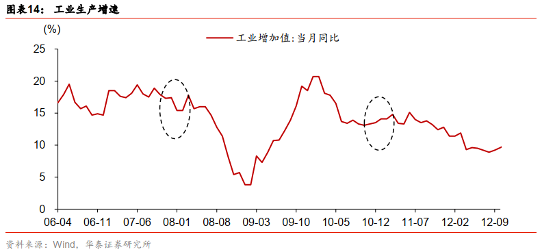 限电对工业生产存在不利影响、但程度有限。由于保障民生为重,限电政策往往要求企业错峰生产、限制高耗能产业开工时长等,以降低工业用电需求,难免会对工业生产带来负面影响。2008年1-2月工业增加值同比较上年底回落2个百分点,或部分受限电政策影响,而2010年底至2011年初工业产出增速平稳甚至有所上行。冷冬对工业生产的影响程度有赖于限电政策的覆盖范围与持续性,低温雨雪环境本身对工业活动影响甚微。