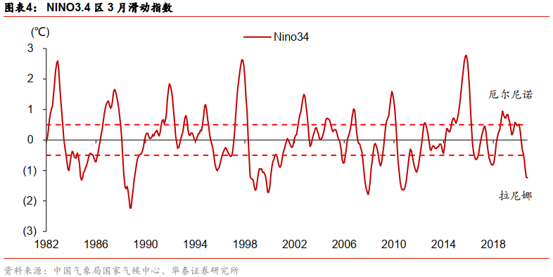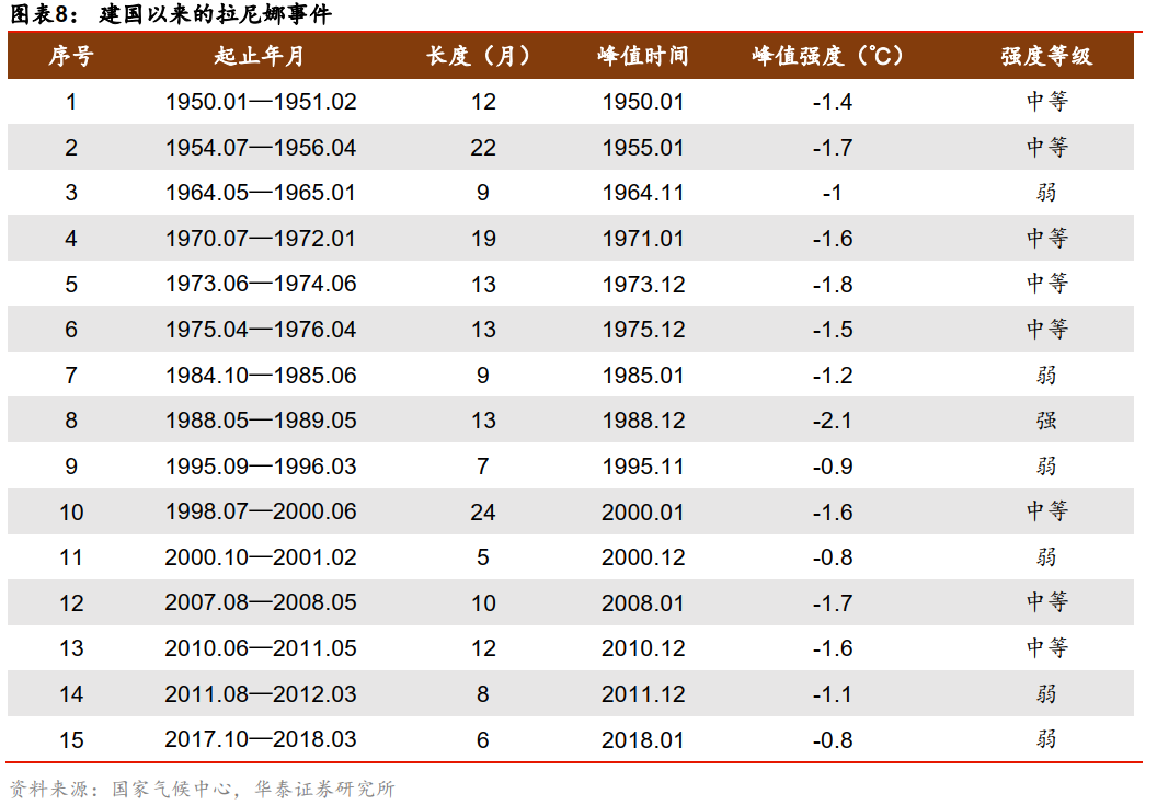 为分析冷冬对经济的影响,可以界定并对标历史上的冷冬时期。尽管官方在2017年制定了冷冬标准,但尚未公布历史上的冷冬年份,而且由于数据可得性局限,我们尚难自行按照该标准对历史上的冬季进行界定,对此我们选择参考拉尼娜事件。