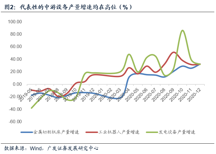 制造业增加值增速持平,12月单月继续加速的主要是黑色金属、通用设备、计算机电子、医药制造等行业;汽车业增加值有所减速。从主要产品看,高景气集中于冶炼(钢材、有色)、设备(工业机器人、机床、发电设备)、电子产品(平板电脑)。