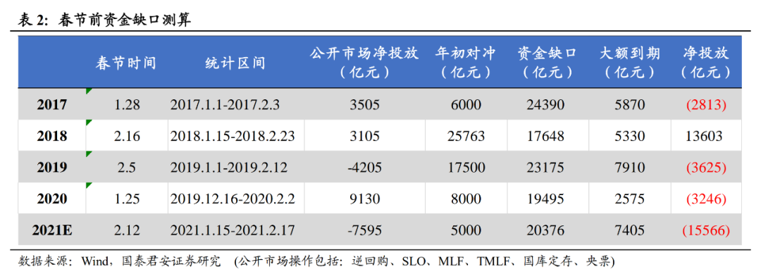 考虑到春节前的资金缺口,央行继续净投放值得期待。根据测算,春节前还有居民取现需求(历年M0均值1.2万亿元)、缴准(约3000亿元)等资金压力,如果要将资金缺口填补到往年均值水平即净回笼3000亿左右,可能还需要央行投放1-1.2万亿资金。因此,预计春节前央行还会适时加大净投放,无非是何种方式投放的问题,谈论宽松小周期回归到货币中性为时尚早。
