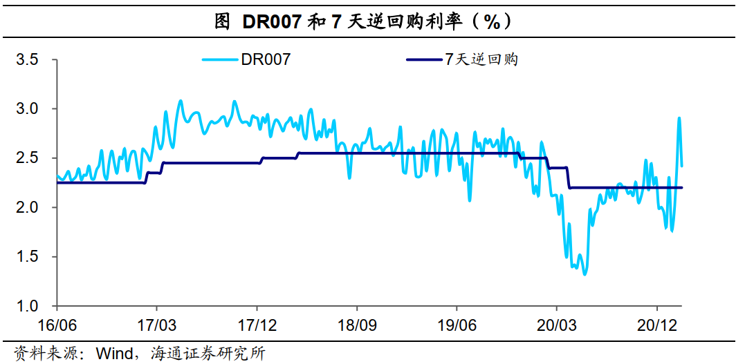 而当前的资金价格指标中,逆回购利率是我国最重要的政策利率。央行多次强调要让市场利率(尤其是DR007)在逆回购利率附近波动,所以只要逆回购利率不调整,短期内市场利率明显低于、或高于政策利率,都难长期维持,所以市场利率低的时候不能对宽松太乐观,市场利率高的时候不能对宽松太悲观。