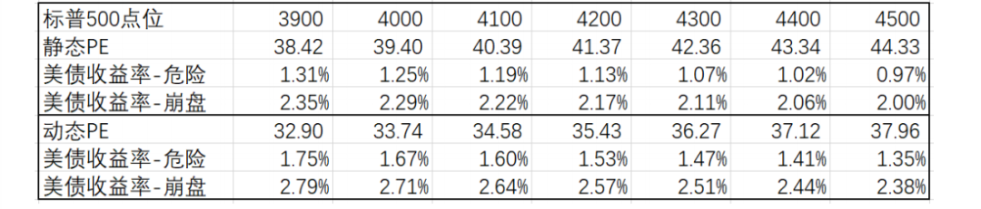 2. 根据敏感度分析,按照当前点位(3900)的静态估值计算,美债收益率升至1.3%以上后,美股将面临回调。如果考虑未来业绩的增长(EPS+16.8%),按照当前点位的动态估值计算,美债利率需升至1.75%才会对美股产生冲击。