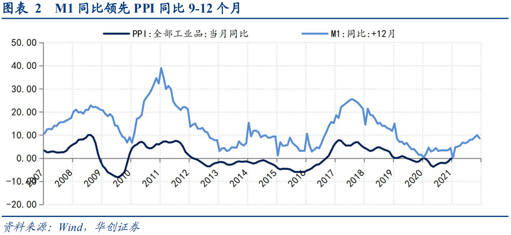 作为库存的领先性指标,我们一直在四象限模型中以M1同比前瞻工业企业库存周期的变化。按照9-12个月的领先度,2020年M1同比持续抬升(由4.8%至10%),意味着2020年底2021年初有望看见一轮工业企业库存周期的启动,PPI或将加速上行。