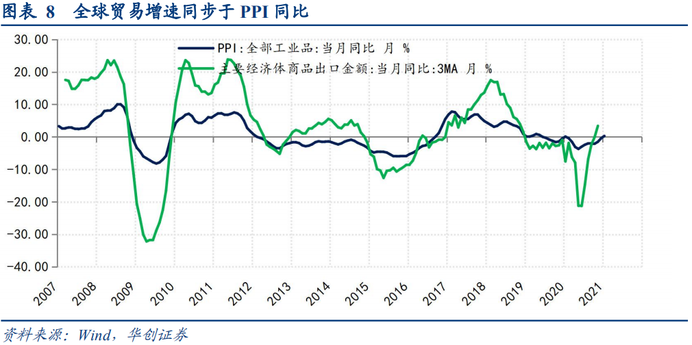 额外的,在统计层面,3月开始受低基数影响,PPI翘尾因素的快速上冲本身也是PPI上行的一大动力(1月翘尾-0.4%,5月翘尾2.8%)。这意味着即便从2月开始大宗商品价格零上涨,PPI 5月高点也将达到3.5%左右。