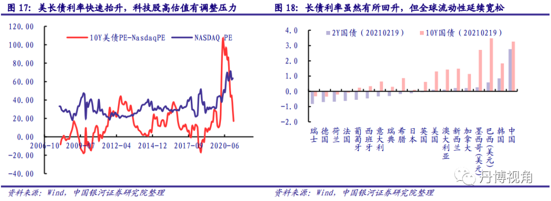 宽松环境下全球股市估值趋势性抬升,但目前风险也有所上升。但总体来讲,全球主要央行利率仍维持在0附近,低利率环境的维持,即使美联储扩表边际收敛,市场风险偏好不会受到太大影响,市场关注焦点转向基本面。
