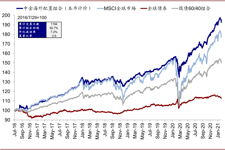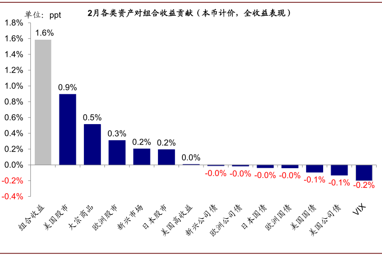 图表: 2月,我们的海外资产配置组合上涨1.59%(本币计价)