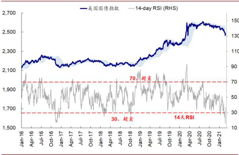 图表: 伴随美债利率2月末突破1.6%,债券一度超卖严重