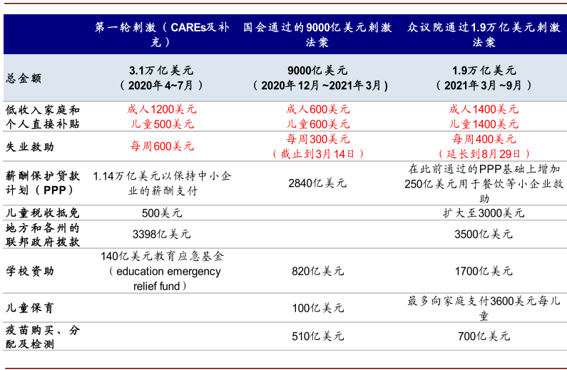 图表: 拜登近期提出新一轮1.9万亿美元的刺激规模已于众议院通过