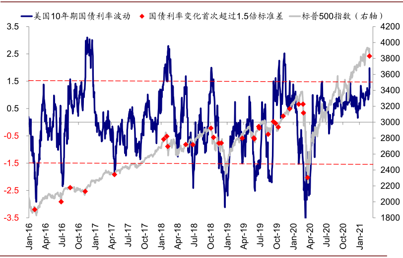 图表: 2月25日当天盘中10年美债一度骤升至1.61%,波动幅度高达过去一年2倍标准差