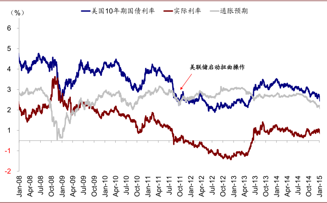 图表: 参照2011年经验,如果美联储重启扭曲操作的话,对于压低长端利率将一定作用