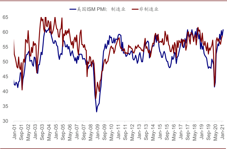 ► 财政刺激:新一轮刺激即将兑现,经济数据有望逐步体现效果。1.9万亿美元的财政刺激已经通过众议院全体投票,目前仅剩参议院投票通过即可。不过参议院版本可能会取消在众议院版本中15美元的最低时薪要求[2],这一修改需要众议院重新投票,但我们预计不会遇到太大阻力。因此,目前看1.9万亿美元的新一轮刺激有望很快出炉,其中包含大量的直接补贴(低收入人群大人和儿童每人1400美元)和失业救助(每周400美元直到8月底),这将对提高居民可支配收入,支撑消费需求起到积极效果。实际上,伴随着疫情和疫苗进展,以及2020年12月底第二轮9000亿美元刺激出台,居民储蓄率、零售消费、PMI、新屋销售等都已经又出现明显改善。