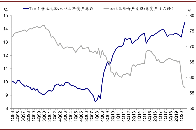 图表: 当前美国银行机构资本充足率处于历史高位,但可能因豁免因素存在虚高