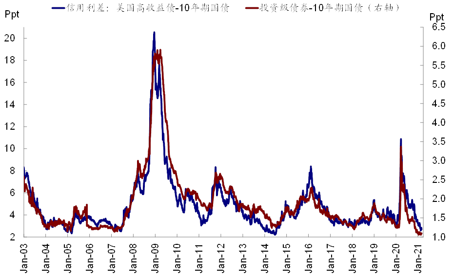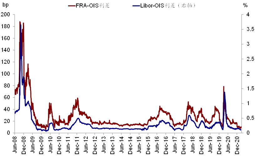 2)金融流动性并没有明显收紧:虽然美债利率特别是实际利率都明显走高,但目前实际利率依然大幅为负,远没到收紧转正的底部。更重要的是,我们追踪的衡量一系列金融市场流动性环境的指标,如FRA-OIS、商业票据、信用利差等等,也都没有明显收紧,也表明,金融体系的流动性情况依然相对稳健。