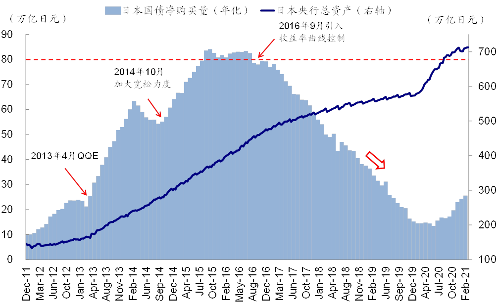 2)收益率曲线控制,参照日本央行此前推出YCC的经验(当然日本央行当时是为了避免过深的负利率而非压低利率),锚定某个价格点位而非数量目标可以起到明显的效果,即利率被完全锚定且实际所需的购买规模不断下降。不过,这种锚定某个点位价格的操作可能会“扭曲”市场定价,从中长期的推出角度可能会带来更大的麻烦;