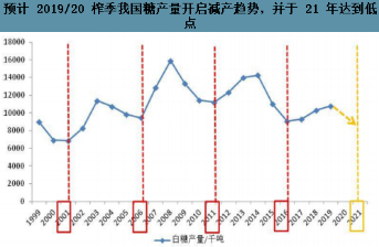 从产业周期看,我国第四轮糖周期始于2019年1月,对应价格5040元/吨。从周期规律来看,假设上行期30个月,国内糖价高点将出现于2021年年中,目前糖价还有上行空间。
