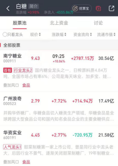 多重催化下,糖业个股今日迎来脉冲,南宁糖业一字板,广州浪奇、华资实业大涨。
