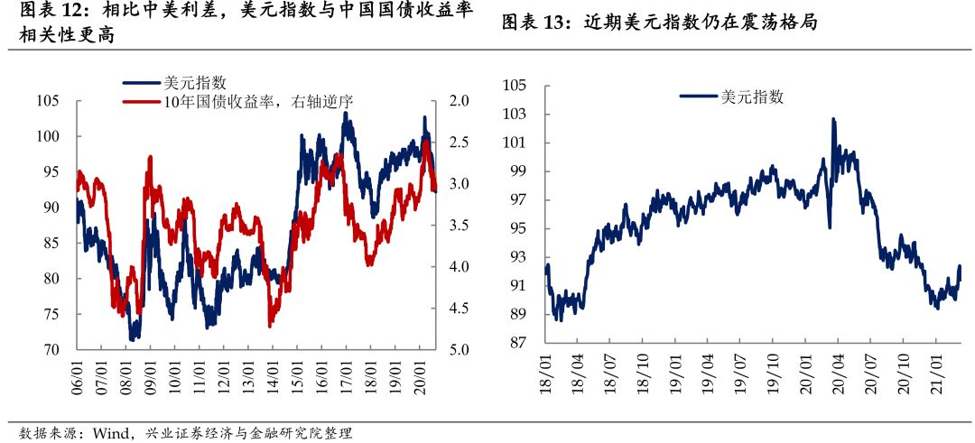 对债券市场而言,海外影响因素仍然是暗牌,需要一定的时间去印证。1)通胀预期回升更多是国内债市中期(3季度及以后)需要考虑的因素。从“海外核心通胀回升—美联储应对—国内央行应对”的链条看,需要一定的时间,通胀变量对国内债市而言可能更多是中期(3季度及以后)需要考虑的因素,短期更多是个扰动项。2)对国内债市而言,美元走势比美债走势更为关键。当前美元处于震荡格局,对国内债市影响亦可能是中期需要考虑的因素。