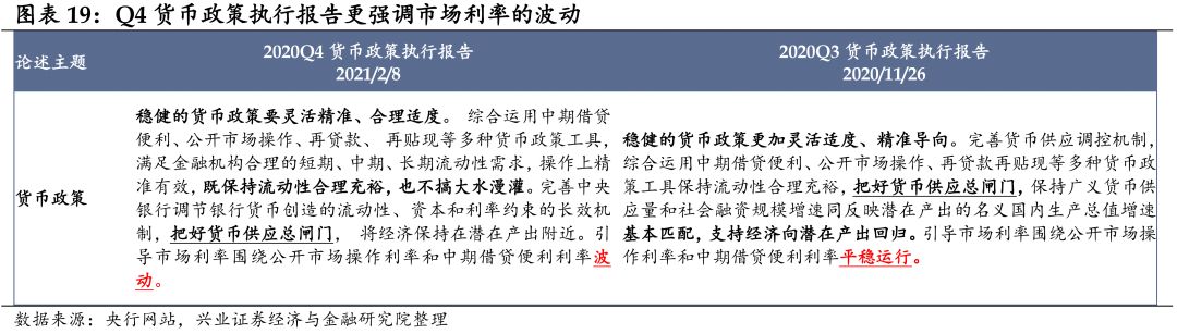 2021年的紧信用大概率不需要紧货币(抬高政策利率)。2021年信用收紧可能更多地通过紧财政、严监管、破刚兑来实现,不需要紧货币(即政策利率的上调)。