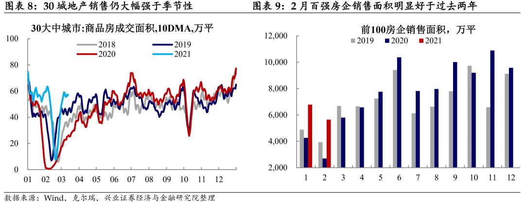 地产销售和投资的回落只是时间问题。出于管控宏观杠杆率的目的,政策层面实施“分部门管控+有保有压”的措施,即政府部门以紧财政推进稳杠杆,企业部门制造业通过做大分母来稳杠杆、地产则重在压缩分子,居民部门则从供需两端管控购房贷款。政策的意图可能在于通过制造业投资回升来对冲基建及房地产投资的潜在下行。尽管当前地产仍然表现较强的韧性,但政策已经着手在房企拿地及管控居民需求等方面加大调控力度,地产销售和投资的回落只是时间问题。