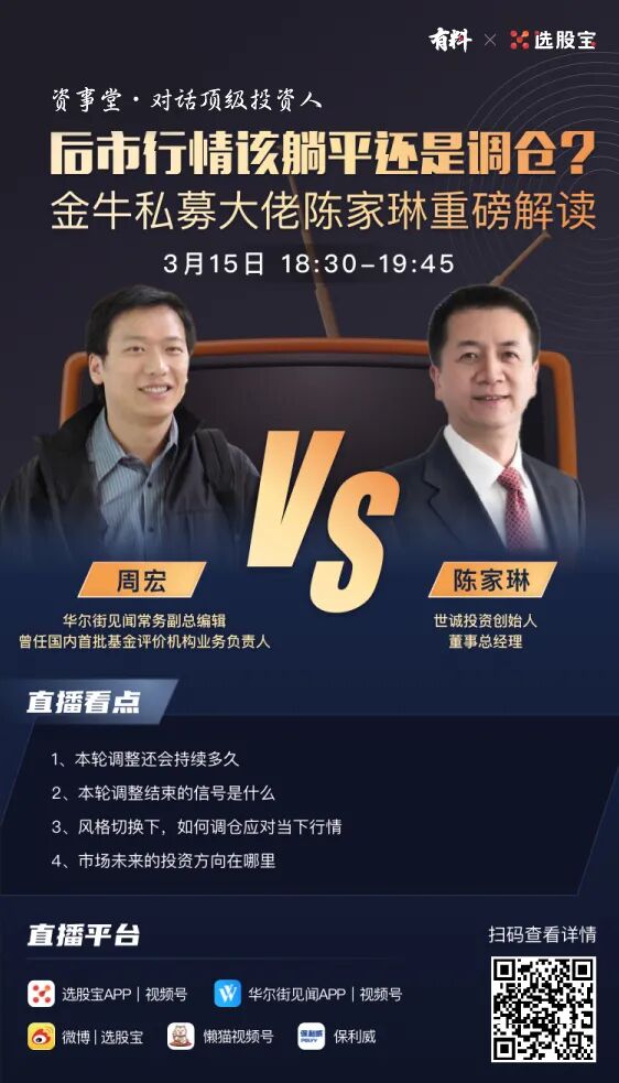 3月15日,在选股宝X资事堂联合推出的“对话顶级投资人”直播室,陈家琳详细分析了近期的市场波动的内涵、机理和可能发展趋势,从机构投资者的角度分析了下一阶段的市场机会和风险。