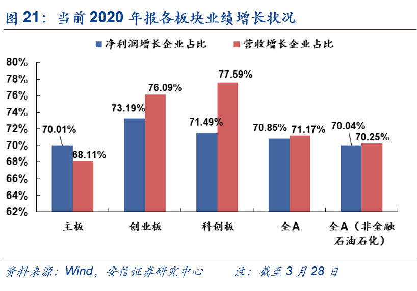 陈果团队称,一季报A股大概率呈现恢复性高增长,建议关注一季报预告高增长的优质公司。当前2021年一季报业绩预告已经开始陆续披露,将于4月15日前披露完毕。截至3月28日中午12点,2021年一季报预告披露率为3.71%,主板、创业板和科创板披露率分别为2.78%,5.63%和8.06%;我们预计2021年A股一季报大概率将呈现恢复性高增长。