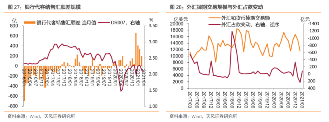 不过,仅从数据来看,商业银行代客结售汇净值与资金利率的关系并不十分明显,但是1月的压力无疑与此有关。