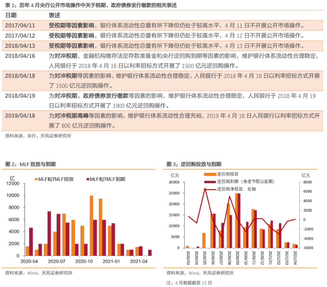 目前来看,5月仅有1000亿元MLF和700亿国库现金定存到期,整体公开市场到期规模并不大。