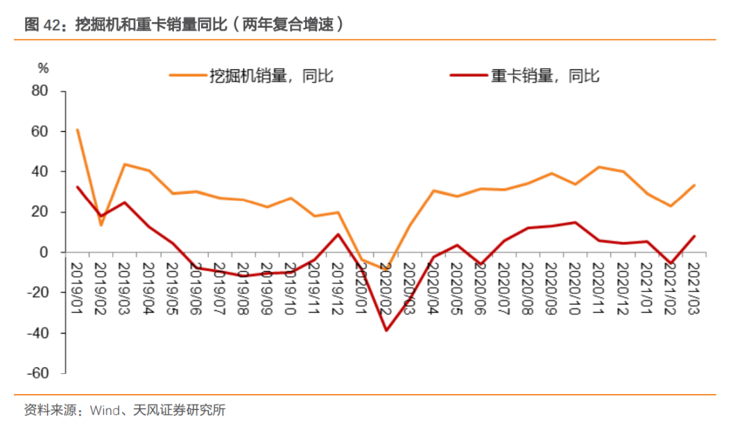 另外,挖掘机和重卡销量同比(两年复合增速)再度上行也印证了建筑业活动开工正常。