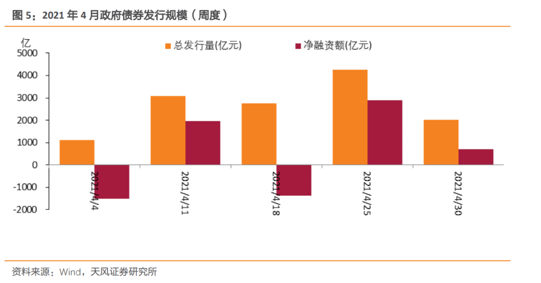 而从发行计划来看,4月最后一周政府债券供给压力并不大,发行规模上小于之前几周。
