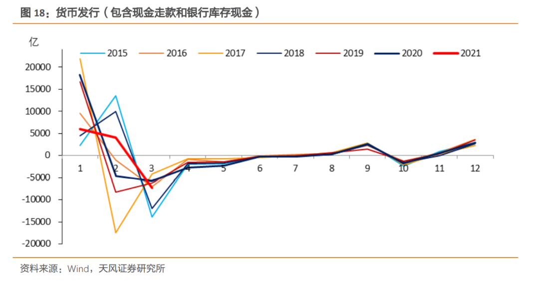 该预测值与疫情前年份相仿,但低于去年同期,这主要是因为疫情期间货币回笼节奏较传统季节性要更慢一些。