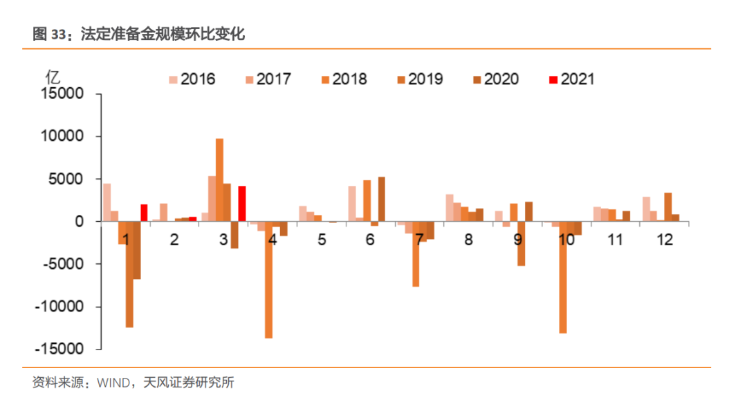 从季节性特征来看,5月法定准备金规模往往有所提升。