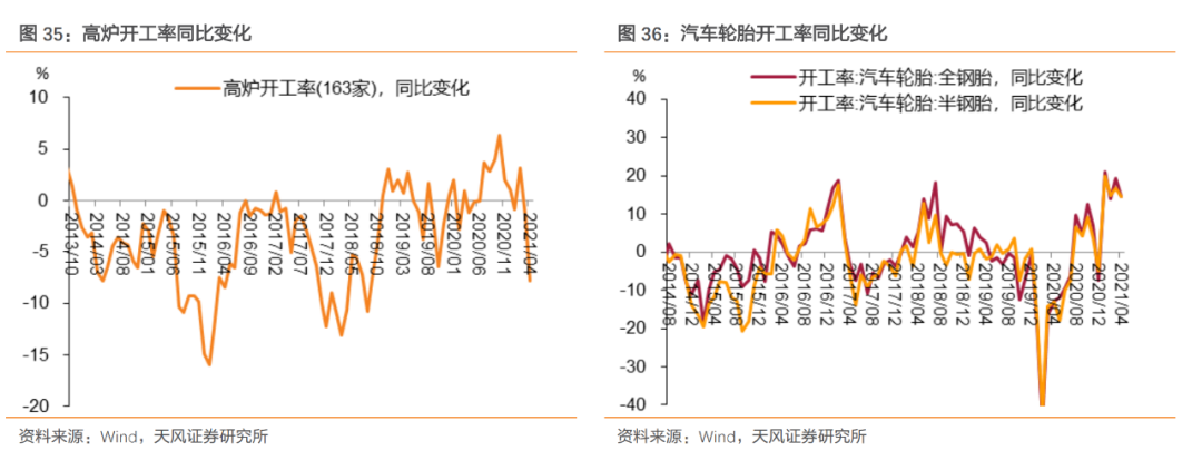 从工业生产高频数据来看,4月工业生产应该较3月会有所提升,虽然高炉开工率依旧不强(可能与环保限产有关),但汽车轮胎和纺织相关的开工率仍在继续提升或处于相对高位。