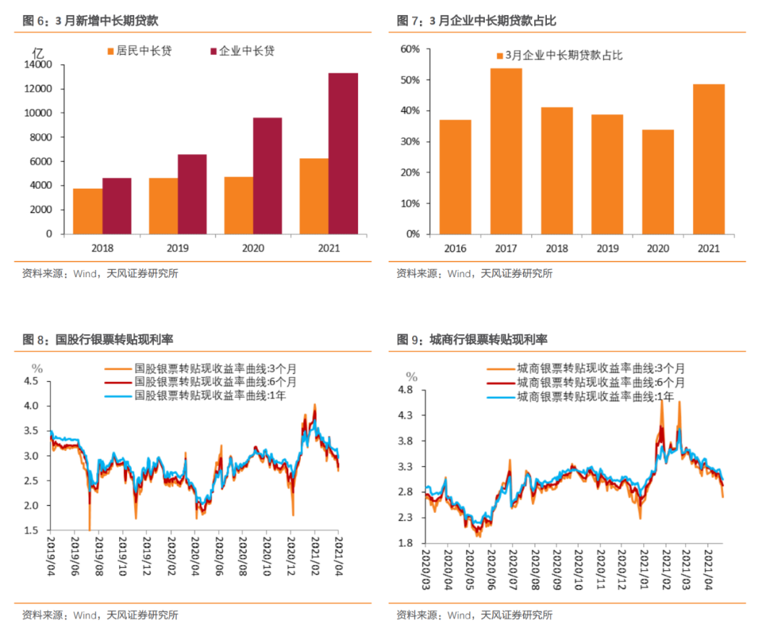 今年总量上信贷额度可能有所调控且投放节奏有所前移。据彭博社4月6日报道,3月底中国央行召开全国24家主要银行信贷结构优化调整座谈会,要求今年银行新增信贷投放量大致与去年相当,而今年信贷投放节奏有所前移意味着后续投放力度可能有所放缓[3]。