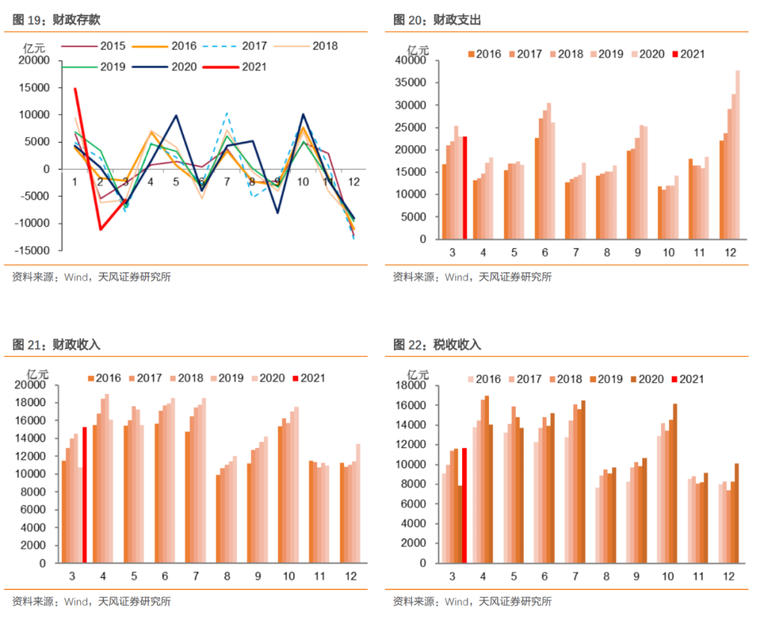 结合来看,我们判断前期财政结余资金在4月可能有集中拨付和投放,整体财政支出力度可能有超季节性的情况。