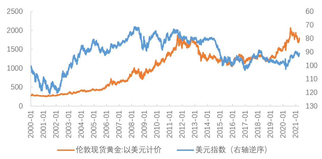 图3:美元指数和黄金价格的负相关性并不稳定