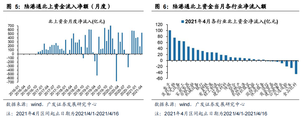 2021年4月,北上资金净入526.1亿元,其中沪股通当月累计净流入185.5亿元,深股通当月累计净流入340.6亿元,综合来看,4月陆股通资金大幅净流入。