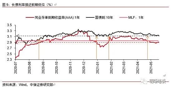 总体而言,2021年春节后的这一轮利率下行行情,背后是政策目标重心的切换,偏紧货币+宽信用组合切换为偏松货币+紧信用的组合,导致了债券市场面临的资金偏松+资产荒的格局。这一逻辑能持续演绎多长实际,需要等待政策目标重心的下一次摇摆切换。