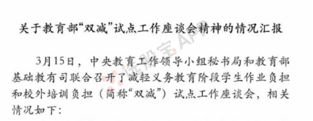 据中国基金报报道,周一盘前,有媒体报道称,北京市海淀区教委即将出台“双减”政策,有知情人士称,随着新政出台,校外培训机构将面临假期不得上课,学科类和素质类教育培训机构不得上市,教育培训机构不得做任何广告。