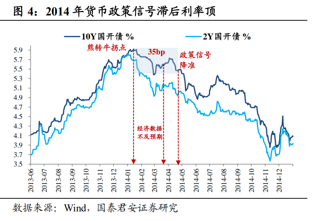 债市从熊转牛,并不一定都是来自于央行的信号,有可能最先来自于利率“超调”后的均值回归,央行的明确信号往往来的晚一些,因为熊市末期市场情绪已经极度悲观,大多会出现利率超调和市场情绪超调,利率往往早于政策信号“先动”。