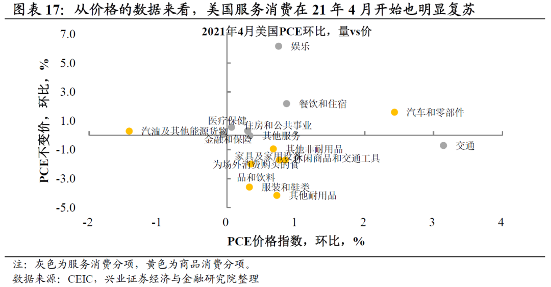 需要注意的边际变化是,发达经济体复苏主线开始从商品向服务切换。随着美国财政刺激效用的逐渐消退,商品消费或将见顶回落,发达经济体的需求主线或开始从商品消费转向服务消费。